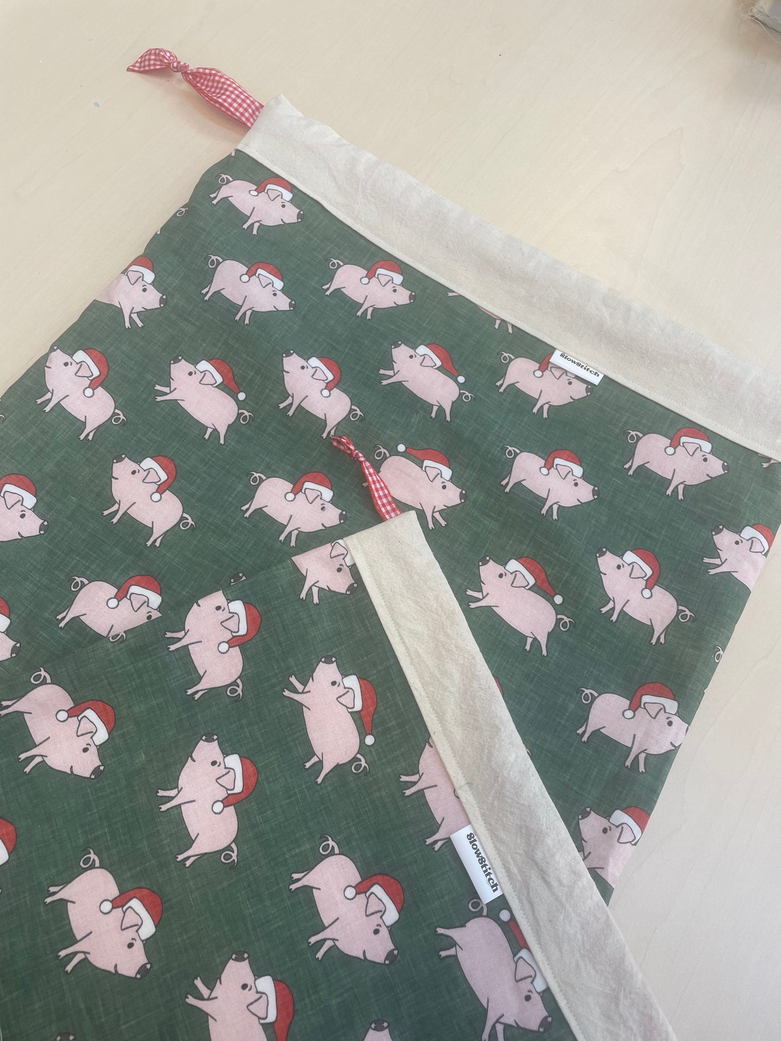 Our reusable Christmas Ham Bags are sprinkled with cheeky little piglets in Santa hats, keeping your Christmas leftovers fresh and your fridge feeling festive.